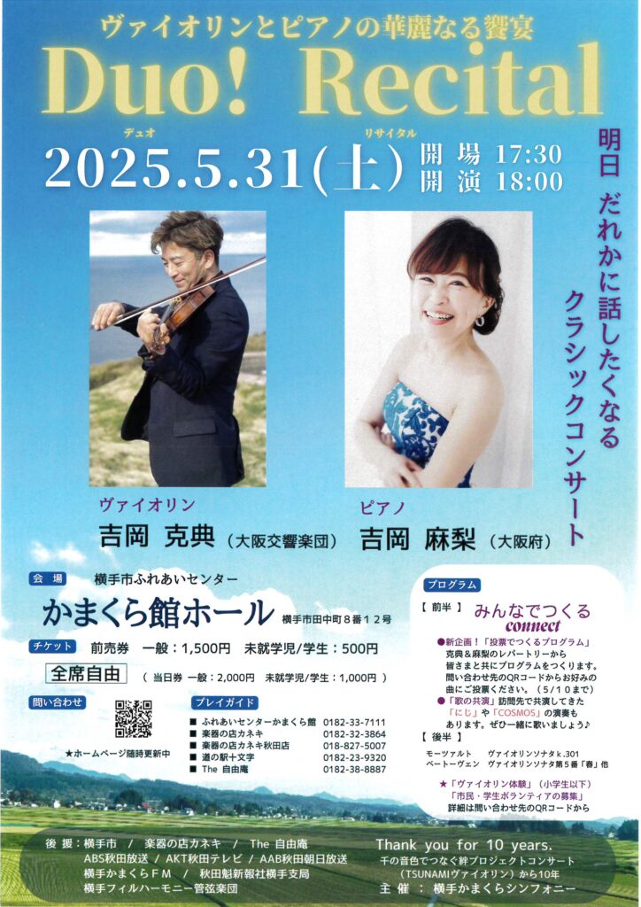 12月21日横手市のかまくら館ホールで「石上真由子ヴァイオリンコンサート」開催!
