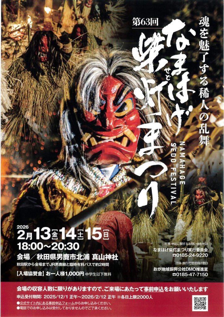2026年2月13日~2月15日に男鹿市の真山神社で「なまはげ柴灯まつり」開催!観覧は事前申し込み制! イベント&ニュース