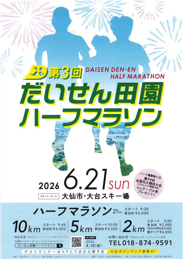 4月10日締切り!6月21日(日)大仙市で「だいせん田園ハーフマラソン」開催! イベント&ニュース