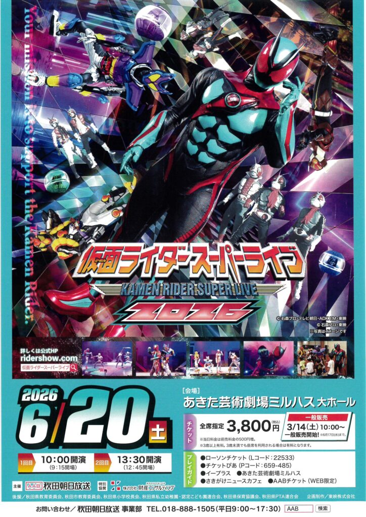 6月20日に秋田市のミルハスで「仮面ライダースーパーライブ」開催!