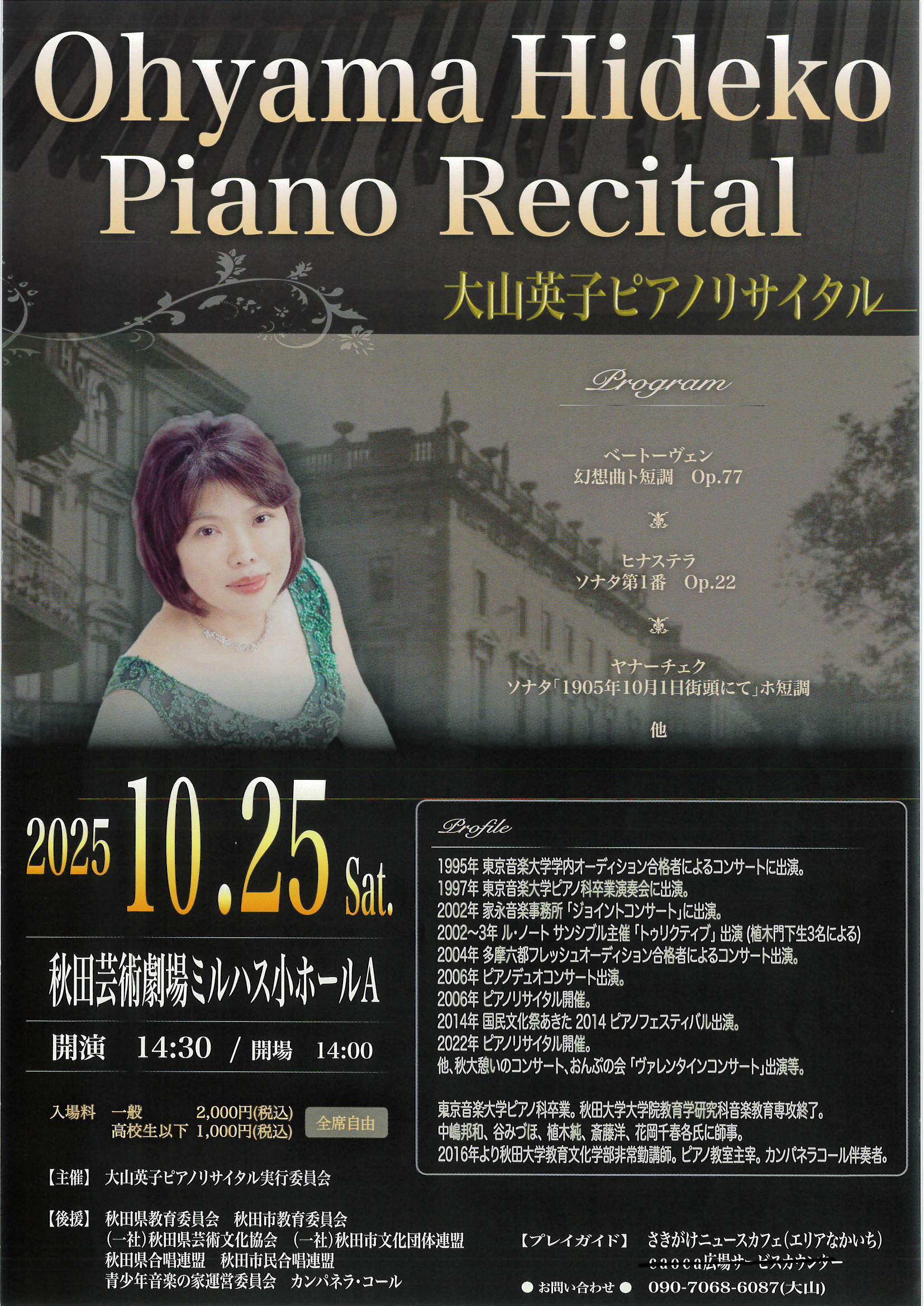 10月25日(土)にあきた芸術劇場ミルハスで「大山英子ピアノリサイタル」が開催されます。