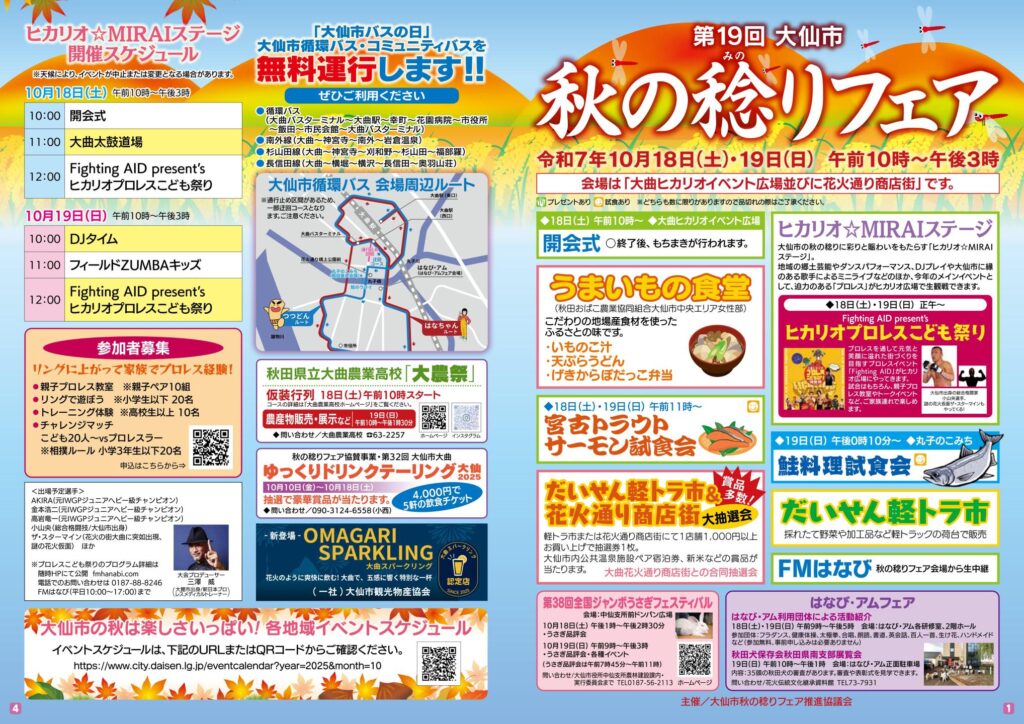 10月18日&10月19日に大仙市の大曲ヒカリオイベント広場と花火通り商店街で「秋の稔りフェア」開催!