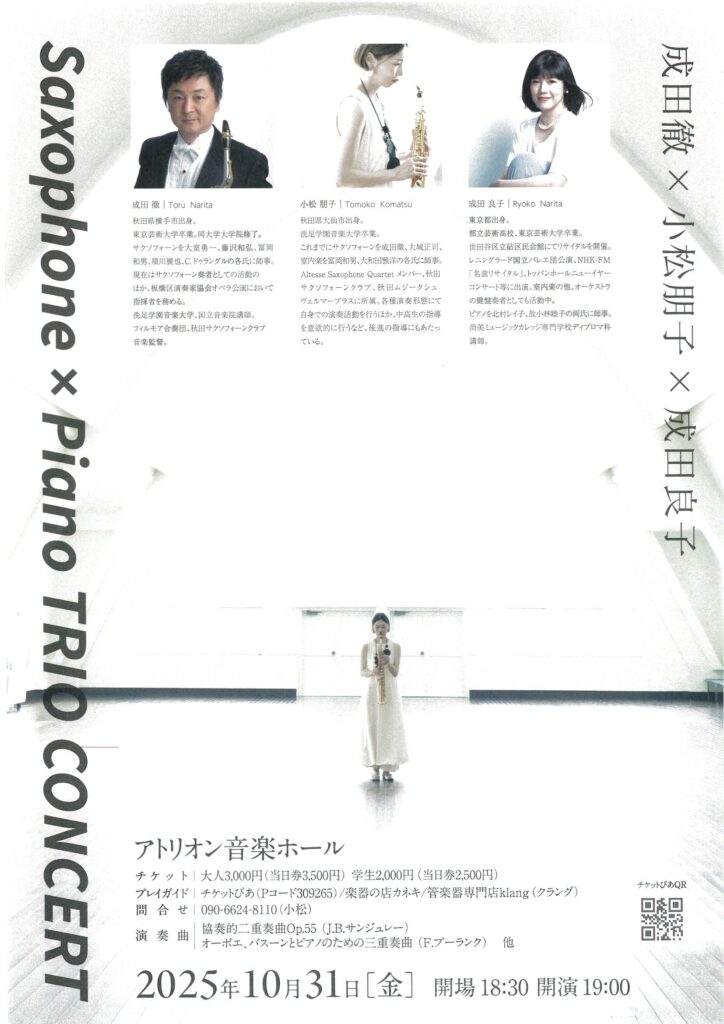 10月31日秋田市のアトリオンでSaxophone ✖ Piano TRIO CONCERT開催!