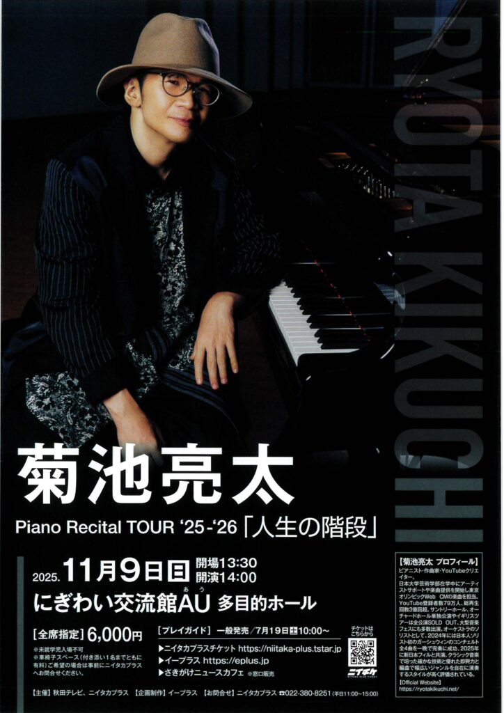 11月9日に秋田市にぎわい交流館AU で「菊池亮太ピアノリサイタル」開催