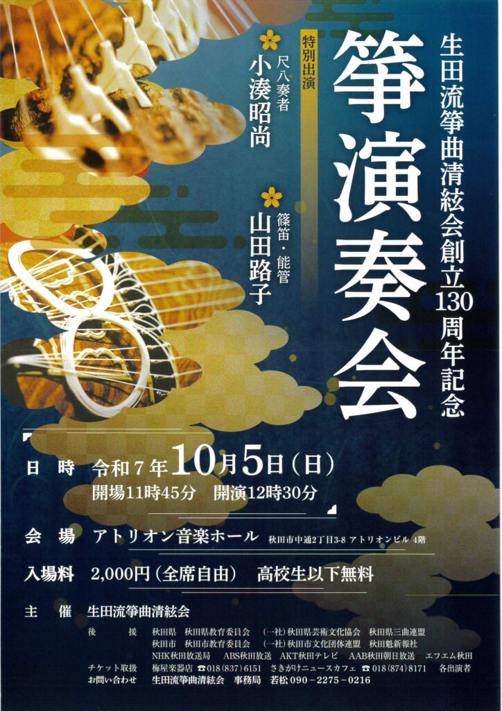 10月5日秋田市アトリオンで生田流箏曲清絃会「箏演奏会」開催!