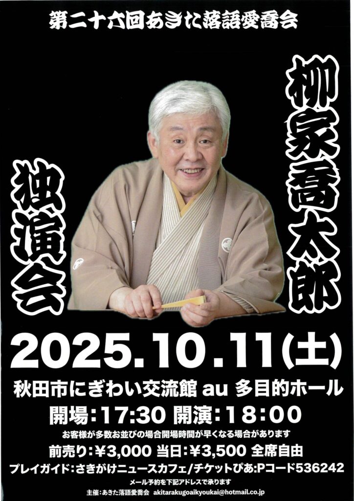 10月11日に秋田市にぎわい交流館auで「柳家喬太郎独演会」開催 -