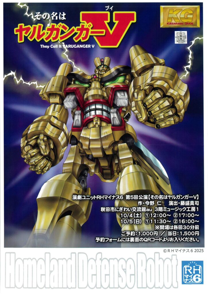 10月4日&5日に秋田市にぎわい交流館AU で演劇ユニットRHマイナス6 第5回公演「その名はヤルガンガーV」開催 -