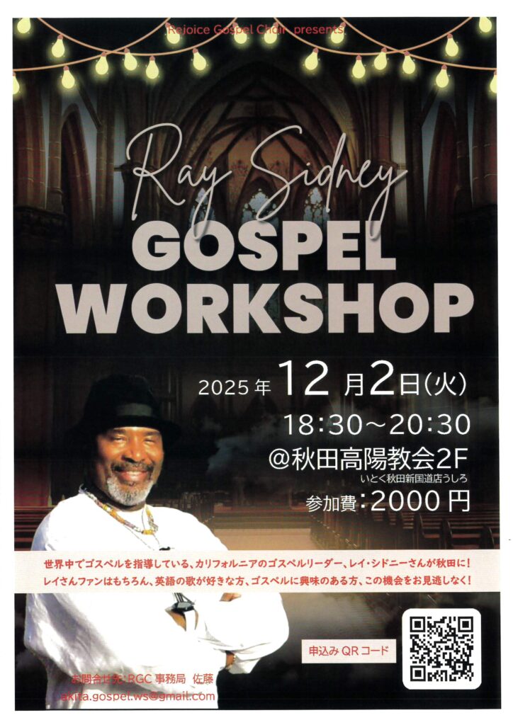 12月2日秋田市の秋田高陽教会で「ゴスペルワークショップ」開催!