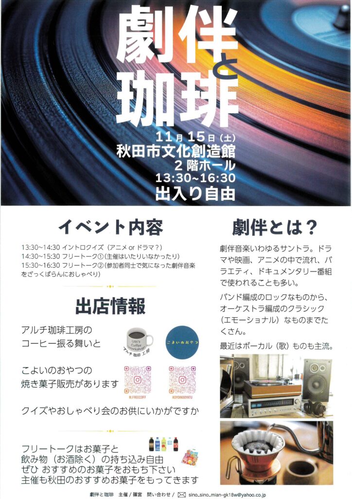 11月15日秋田市文化創造館で「劇伴と珈琲」開催!