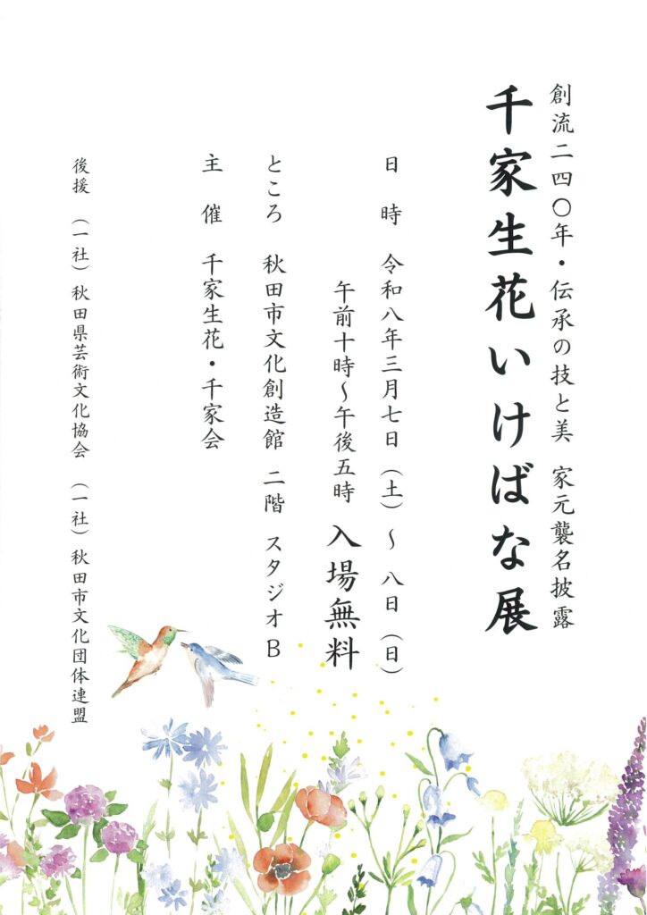 3月7日~8日に秋田市文化創造館で「千家生花いけばな展」開催!
