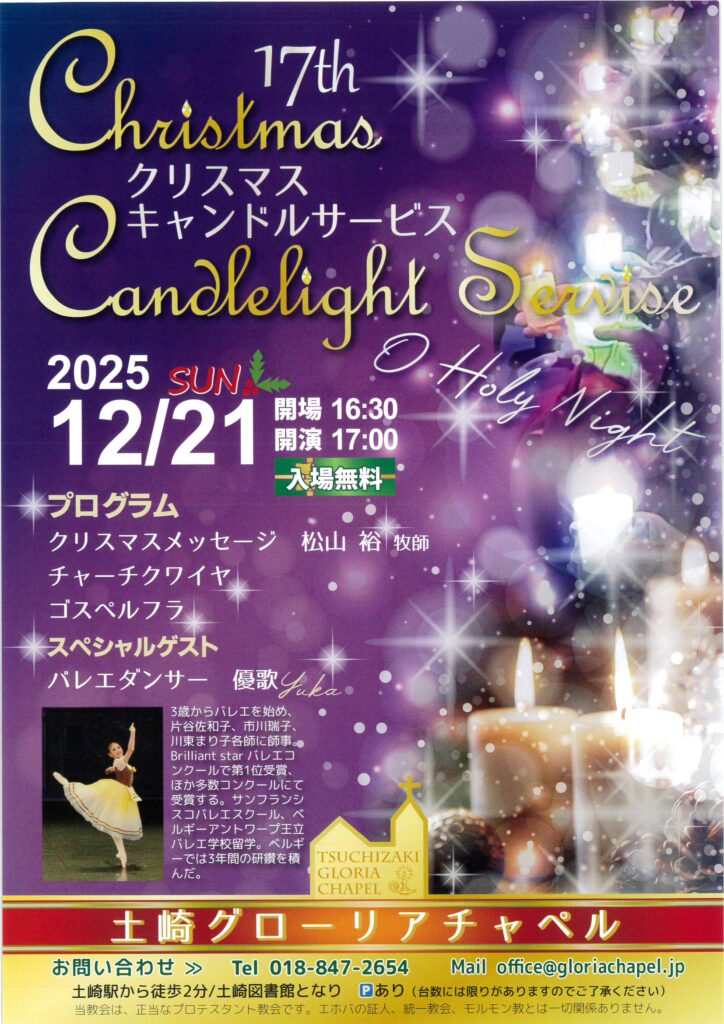 12月21日秋田市の土崎グローリアチャペルで「クリスマスキャンドルサービス」開催!
