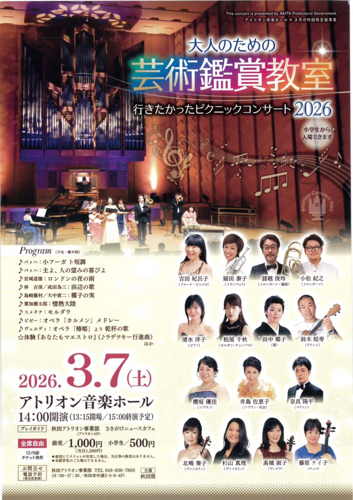 2026年3月7日秋田市アトリオンで「大人のための芸術鑑賞教室」開催!