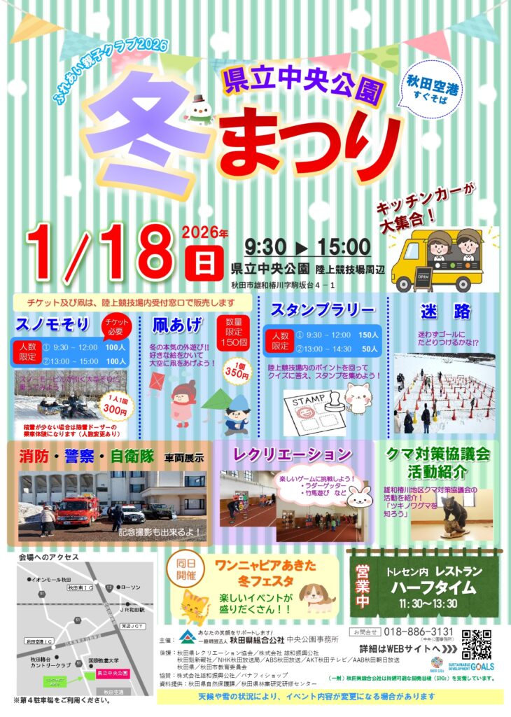 2026年1月18日秋田県立中央公園で「冬まつり」開催!
