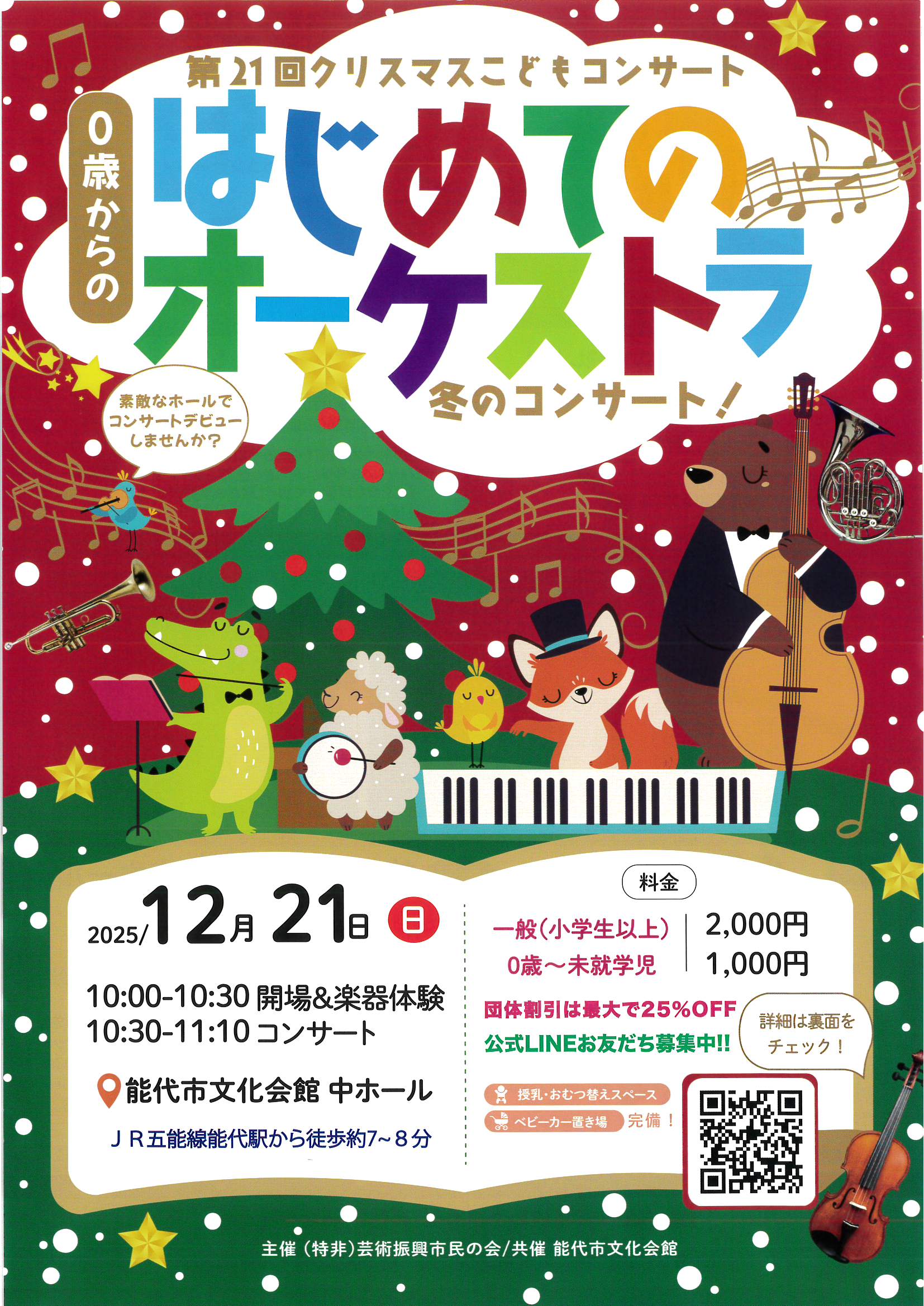 • 12月21日(日)能代文化会館で「クリスマスこどもコンサート」開催!