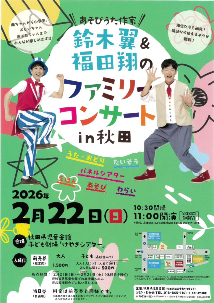 2026年2月22日秋田県児童会館で鈴木翼&福田翔の「ファミリーコンサート」開催!