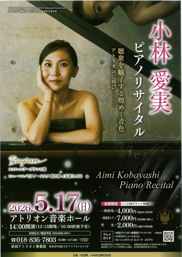 2026年5月17日秋田市アトリオンで「小林愛実ピアノリサイタル」開催! -