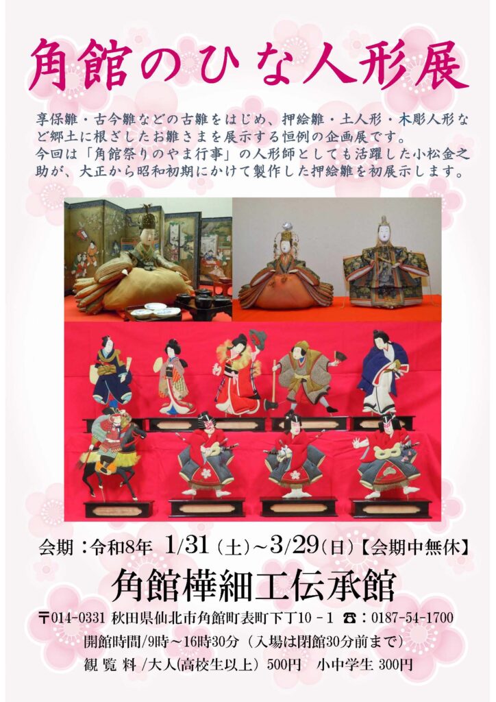 2026年1月31日~3月29日まで角館町・角館樺細工伝承館で「角館のひな人形展」を開催