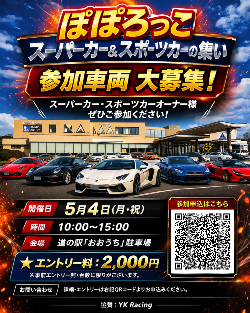 5月4日秋田県由利本荘市の道の駅おおうちで「スーパーカー&スポーツカーのつどい」開催!